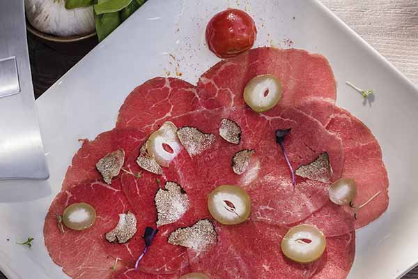Carpaccio ‚‚Ciprani‘‘ – Mit Champignons und Parmesanraspeln15.90