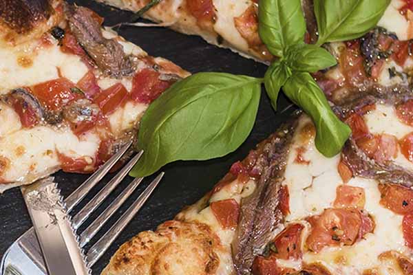 Pizza Buffala – Büffelmozzarella, Kirschtomaten, Basilikum15.90